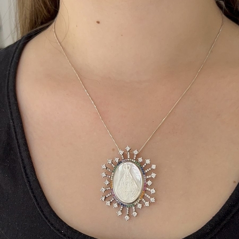 Transforme seu visual e expresse sua fé com o Colar Prata 925 com Pingente Nossa Senhora em Madre Pérola. Adquira já o seu e sinta-se radiante em cada momento!